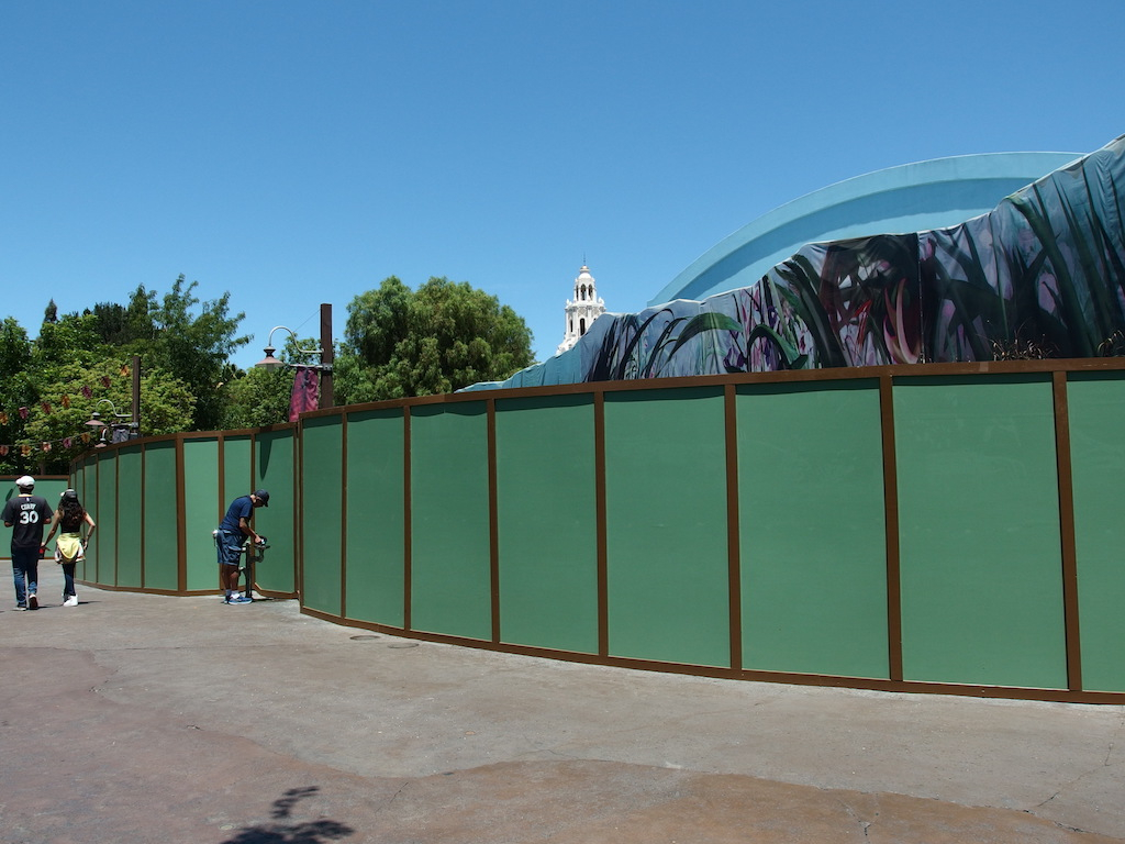 A temporary construction wall has appeared at the base of Tarzan’s Tree House