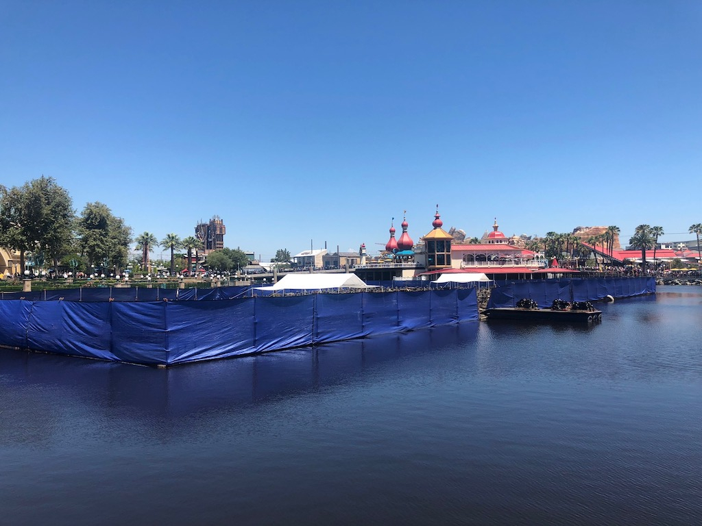 Blue tarps have been added to the barges for World of Color