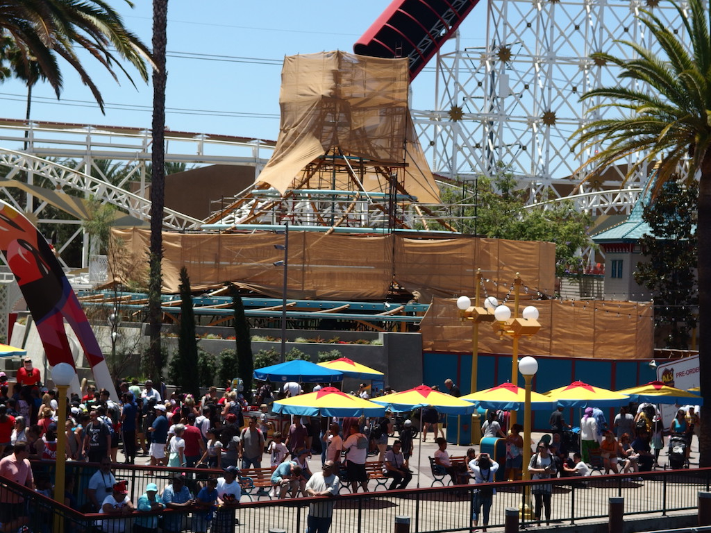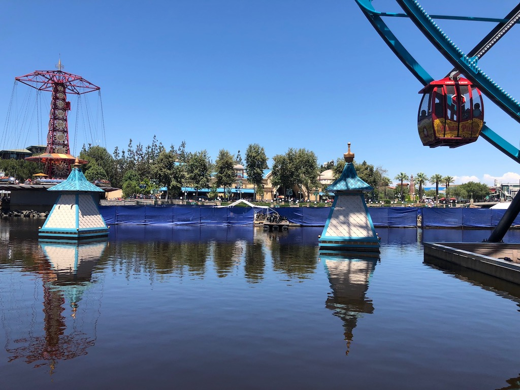 Despite the heat and the crowds, construction continues at the Disneyland Resort. A highly visible project is the addition to the Mickey and Friends parking structure, now moving rapidly forward. Star Wars: Galaxy’s Edge is ongoing, with very few opportunities for the public to see what is going on behind the berms. Over at Disney California Adventure work is still being done on Pixar Pier, despite the fact that it has officially opened. In addition to these, a few smaller projects are also in the mix. They include Big Thunder Railroad, the Tropical Hideaway in Adventureland, preparation for the Marvel themed area that will replace Flik’s Fun Fair, and changes to Downtown Disney.