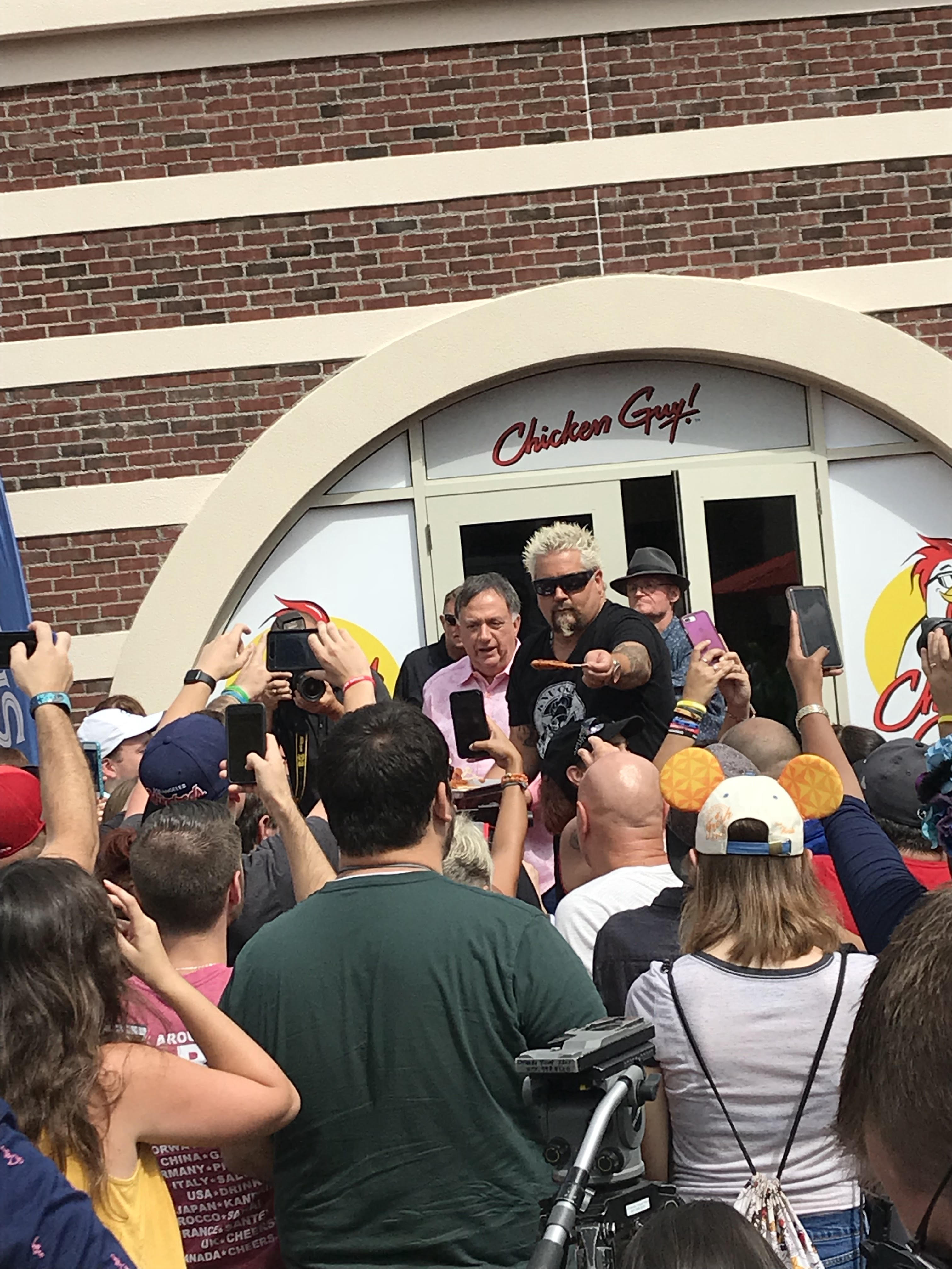 If you are like me when you’re at Disney Springs trying to choose where to eat is like trying to pick which gift to open first. Well now another gift has been added to the pile with Chicken Guy! The new quick service location held its grand opening ceremony this morning, including an appearance by a certain celebrity chef.