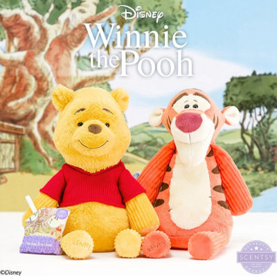 Scentsy Sidekicks are designed for babies and offer a multi-sensory experience. They have crinkly legs, teething rings, and can connect to car seats. These are now available as Winnie the Pooh, Tigger, Piglet, and Eeyore. Each Scentsy Sidekick is $24 and is scented like Hundred Acre Wood. Unlike the Buddies, there isn't a way to replace the scent if it wares off.