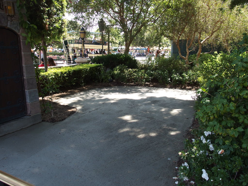 There are a few smaller construction walls around Disneyland as well. The wall around the Haunted Mansion is an annual arrival as preparations are made for the return of Haunted Mansion Holiday. One minor project that is not behind walls is a small patio that has been poured at the “wedding garden” to the west of Sleeping Beauty Castle. Previously this area was a lawn with random flat fieldstones inset.