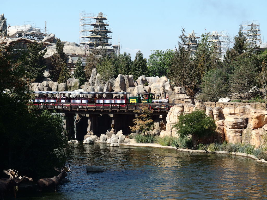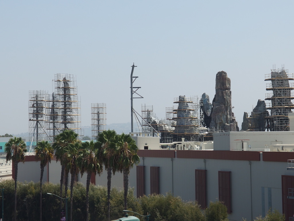 Work continues, of course, on Star Wars: Galaxy’s Edge. Most visible from the outside are the numerous rock spires that are still being added to the show buildings that house major attractions. These can also be seen from inside the park, especially along the Rivers of America. As the newly planted trees grow in, most of this will no longer be visible.