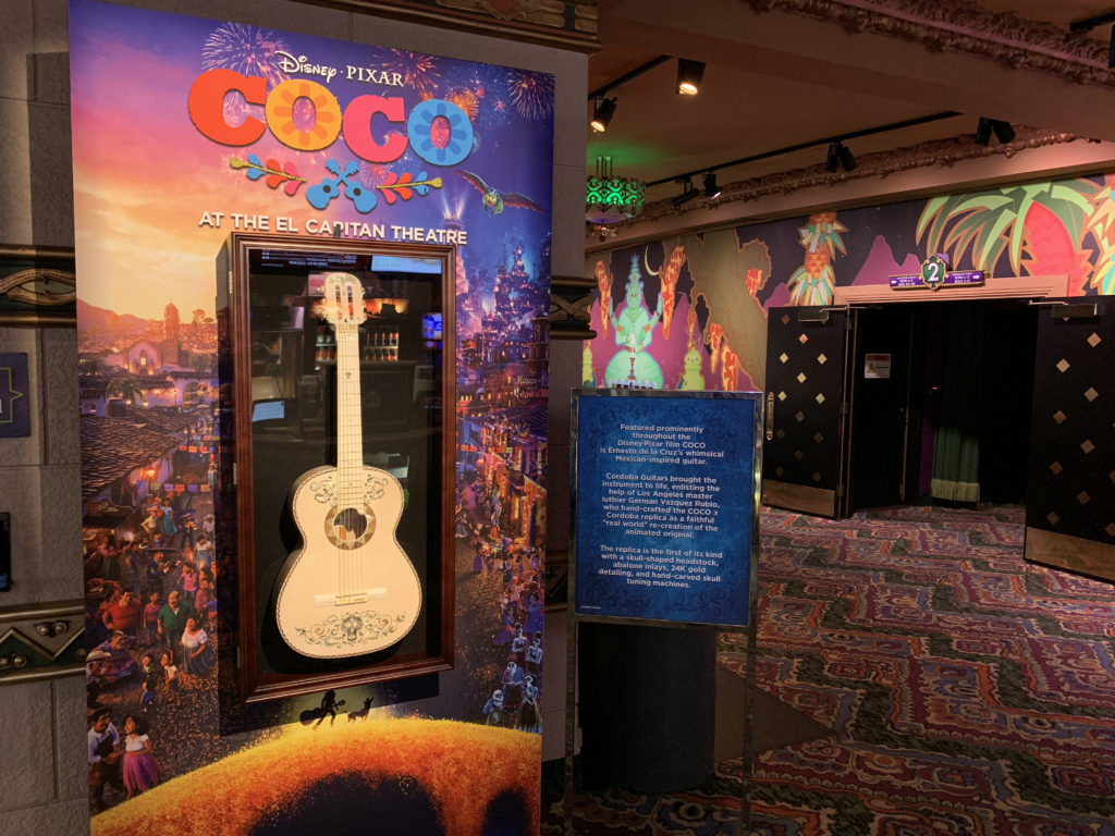 Prior to showtime, it's always incredible to explore the historic El Capitan in all its beauty. In doing so, you'll also discover some fun photo ops and other picture-worthy displays that will only enhance your excitement for the headlining event. Take, for example, this awesome guitar crafted to resemble Ernesto de la Cruz's instrument in the film. Brought to life by Cordoba Guitar, this six-stringed wonder features touches of 24K gold, the signature skull-shaped headstock, and lots of other incredible details worth taking a closer look at.