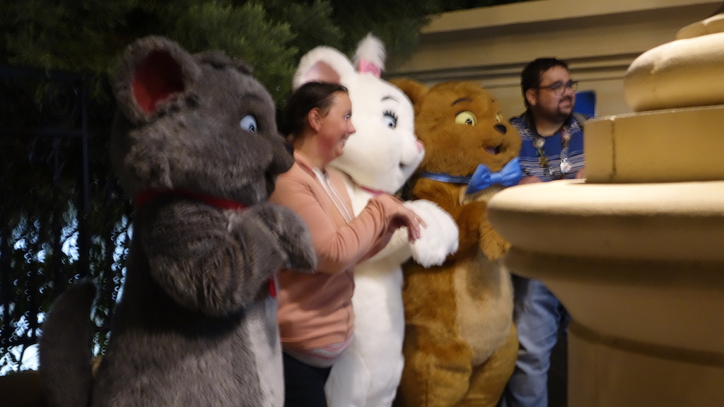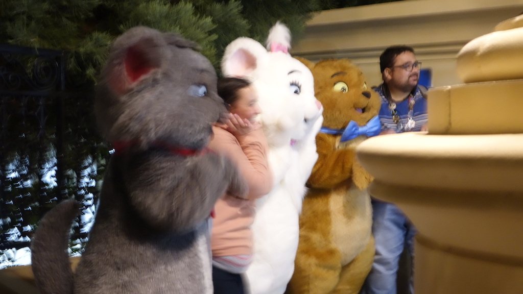 After the concert I walked around the park to catch a picture with Edgar and hopefully Marie, Berlioz and Toulouse. I managed to get pictures with both, but the Kittens photo is super blurry. A couple of things about these meet and greets: