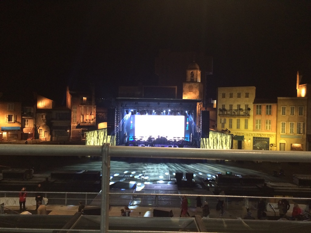 The concert was held on the Moteurs... Action! stage and guests were already lined up by the time I got over there. I managed to get a decent spot in the line and once seating opened, we moved through pretty quickly. I was extremely fortunate to find a single middle seat in the front row of the bleachers. The concert was supposed to start at 9:30 pm but there was a 10-minute delay before the band actually began performing. Once we were all settled in, the Emcee greeted us and the full band came out to get the evening started. They played—and then the spotlight performers came out.