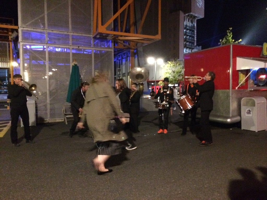 After finally deciding what I was willing to spend money on, several places began to close down for the evening. Mind you, the main concert lasted until 11 pm and the food kiosks starting closing between midnight and 12:30 am, but still I was getting frustrated. I was on my fourth option before I finally got something to eat and, at this point, I was starving. I had a beef lasagne from Italy and it hit the spot. There were two bars set up in the park just for this evening so I treated myself to champagne and listened to some electro-jazz.