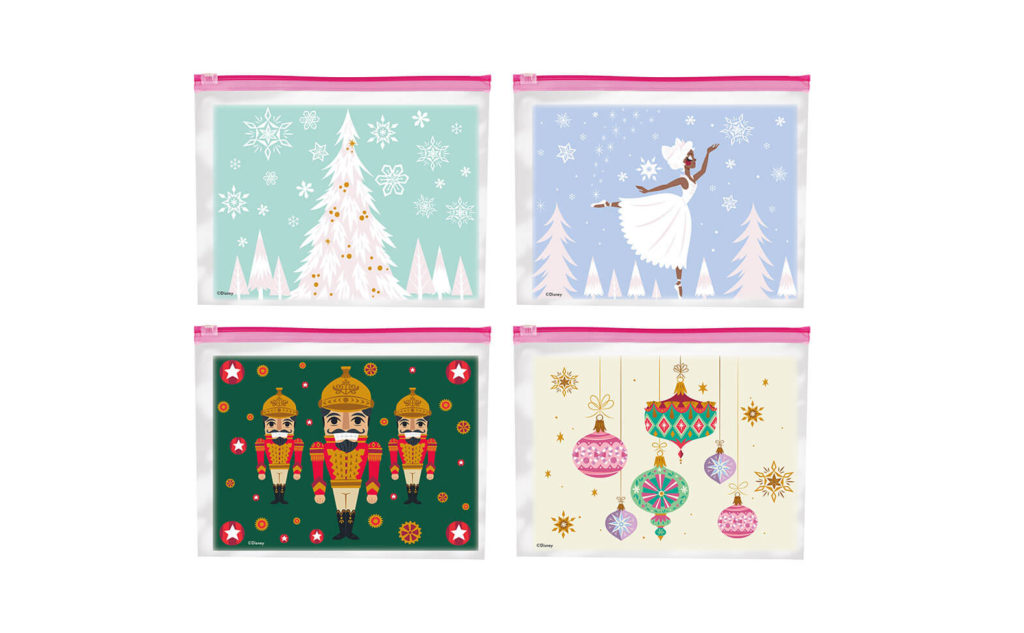 Or how about the smile of your child or grandchild when they open up their lunch box at school and find a Disney Nutcracker treat bag complete with a healthy snack or spoil them with their favorite cookies? Whether it is tasty pralines or sugar plum tarts, the holiday bags will certainly keep treats from the Land of Sweets fresh and delicious until they can be enjoyed. The bags come in durable, quart-size while containers can serve to store cookies or festively crafted gifts.