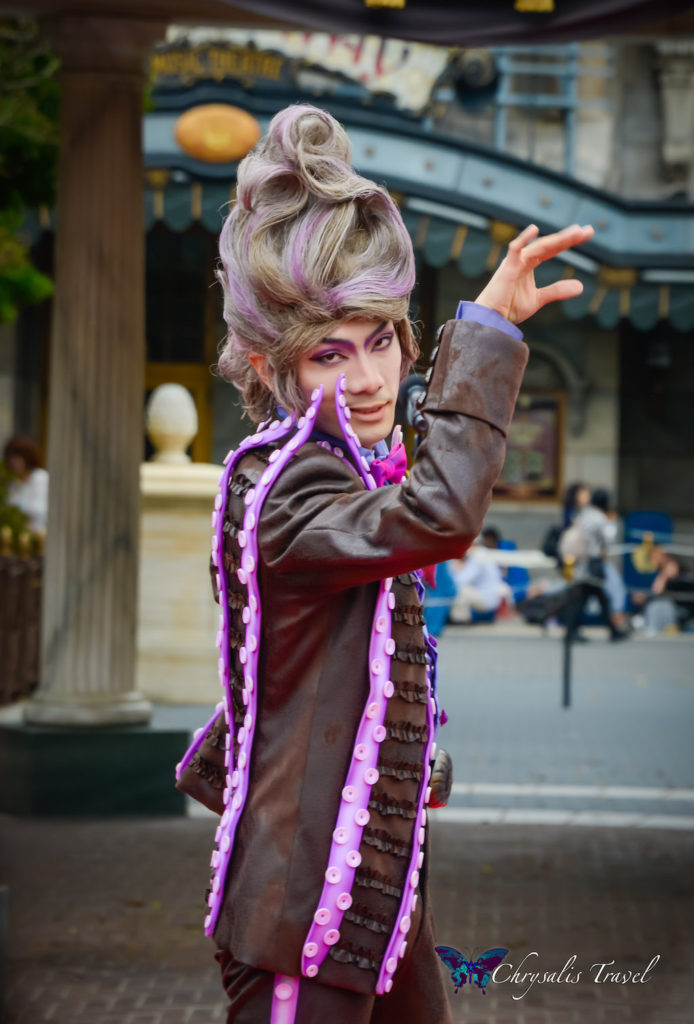 Halloween at Tokyo DisneySea means the return of “The Villains World” – a 25-minute water spectacle involving five ornately-decorated ships, 120 stage performers, and some of your favorite Disney Villains.Mickey and friends are invited by the Villains to attend their Halloween party. “Out of respect,” says the Tokyo Disneyland website, they coordinate their costumes with those of the Villains. Each Villain in turn gets to showcase their particular style, supported by themed dancers around Mediterranean Harbor.