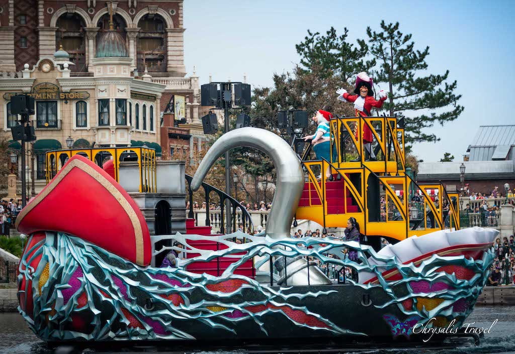 The amount of entertainment scheduled daily at Tokyo DisneySea is almost overwhelming. Every day on Mediterranean Harbor, “The Villains World” parade runs twice, in addition to the 35th Anniversary “Happiest Celebration on the Sea” water pageant, and the nightly spectacular, “Fantasmic.”