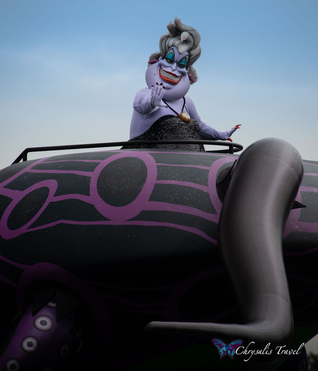 Ursula. They looked great during the day, but even more impressive when lit up at night. And they were popular photo-ops (the PhotoPass photographer stood in front of Ursula).