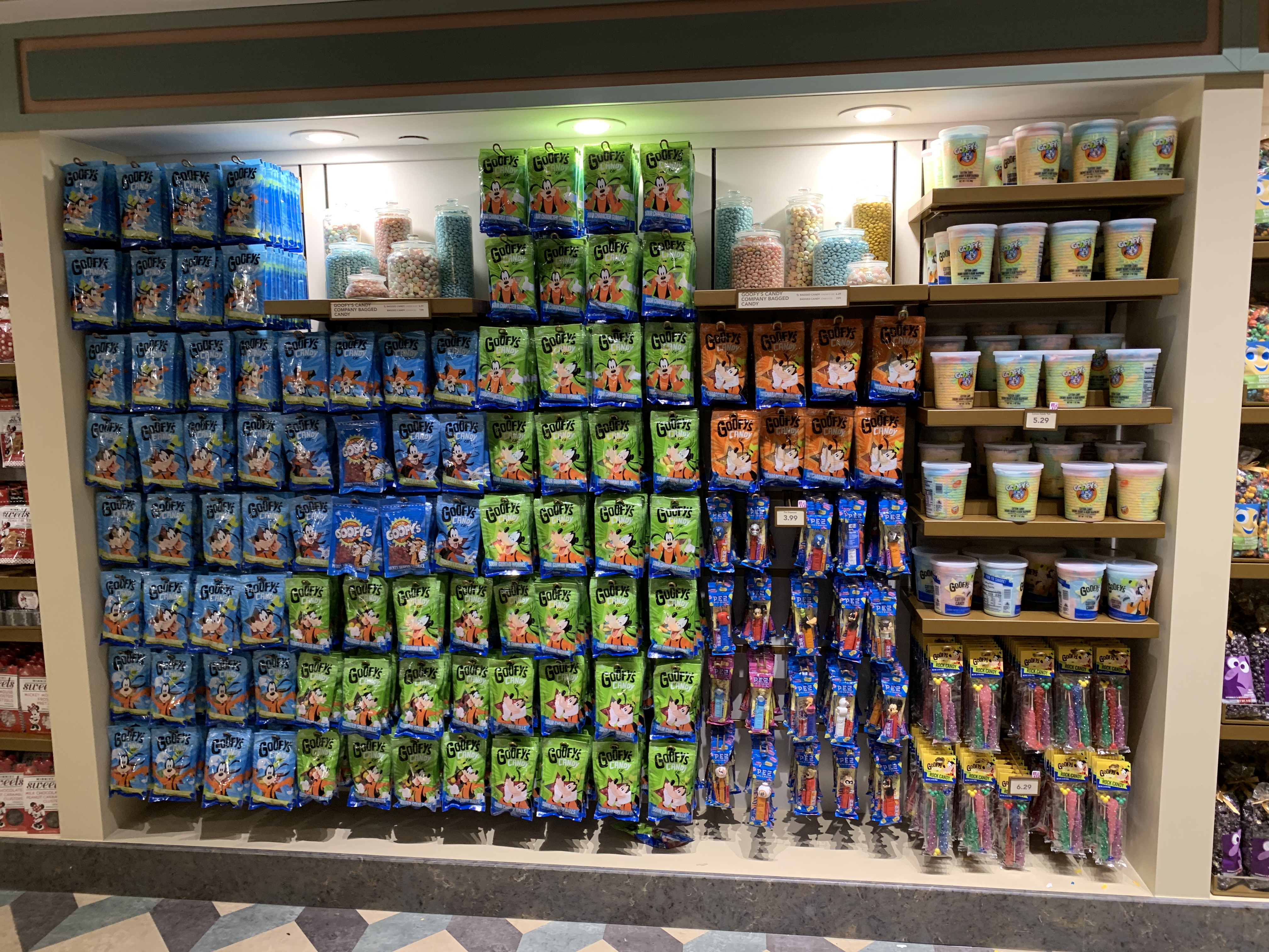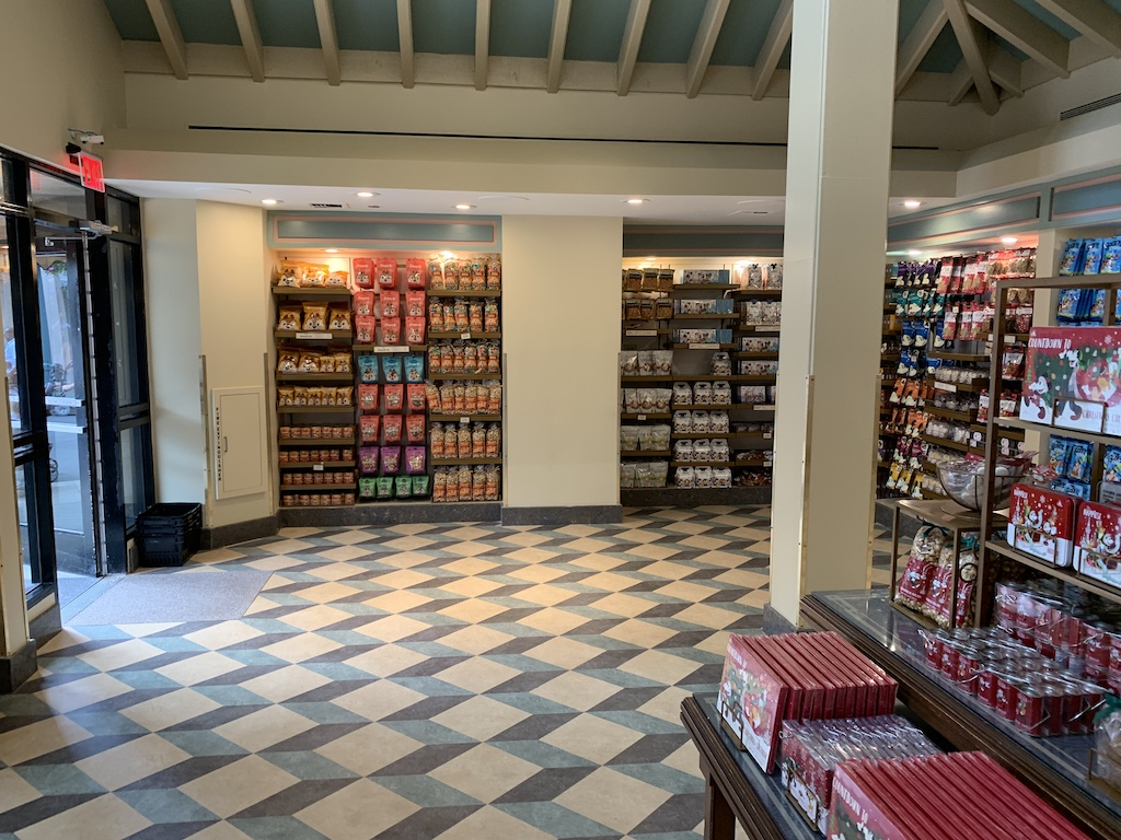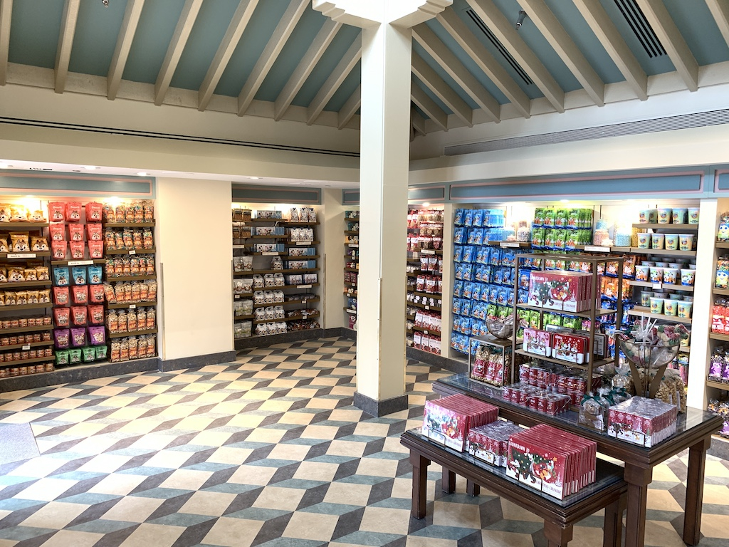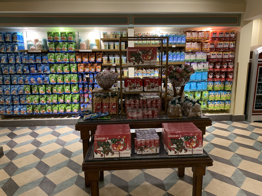 The formerly costume-themed Adrian & Edith's Head to Toe at Disney's Hollywood Studios has recently reopened from its refurbishment and is now carrying packaged candies and other treats. Previously, the shop had featured numerous ear hats that could be embroidered upon request along with goods such as towels, aprons, and holiday stockings. Now, you'll find all kinds of snacks and sweets lining the walls. Plus, with the winter holidays just around the corner, you can also find some specialty items on display as well.