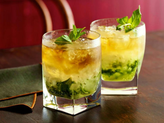 Bourbon, sugar, water and, of course, mint. This is a Disneyland mint julep…