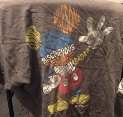 I have owned this shirt for years (as you can see by the wrinkles), and it is one of my favorites to wear to Disneyland and Disney World. I love the use of words to make up Mickey, especially with all of the great adjectives used.