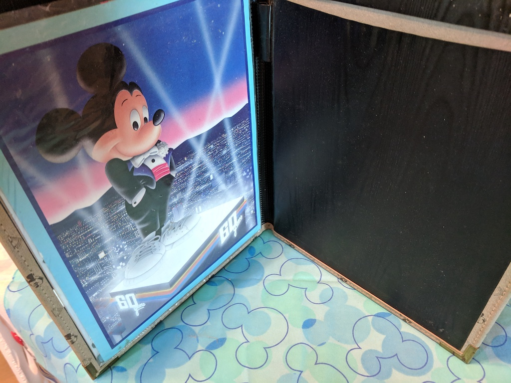 Nearly two decades before Mickey would be regularly appearing on designer purses or bags, the Disneyland Resort would release a few items for the modern executive. I found this folio, matching camera bag and a thin briefcase on deep discount at Disneyland. All these years later the folio is still in use although I’ve hidden the broken embedded calculator with a picture of Mickey the Disney Magazine had as a pull-out when I purchased this.