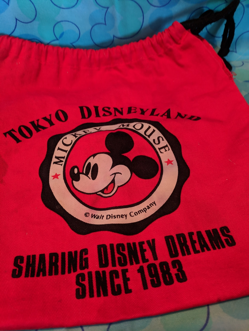 In celebration of my high school graduation, I toured sights around Tokyo, Japan for a week among the fun was a trip to Tokyo Disneyland. It was a very brief trip but this drawstring bag is among my treasured momentos from that trip. I hope to get back there again someday.
