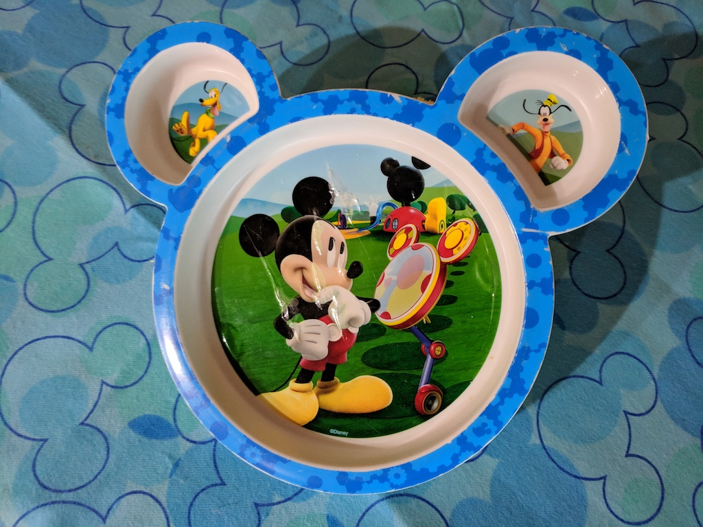 My Mickey Mouse Clubhouse plate has a smiling Mickey standing next to Toodles. I loved Mickey Mouse Clubhouse because Mickey and his friends had a lot of fun adventures. I really enjoyed the Choo Choo Express story and its songs.