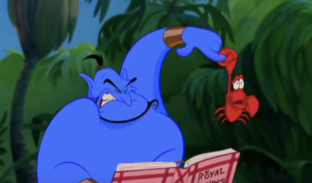 Sebastian and Pinocchio in Aladdin