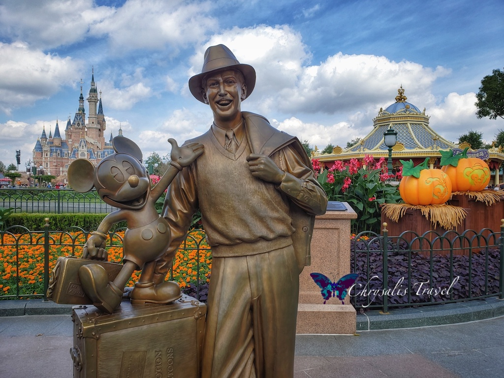 Shanghai Disneyland has an expanded hub with its own ‘land’ designation: Gardens of Imagination. Storyteller Walt and Mickey mark the entry to this land.