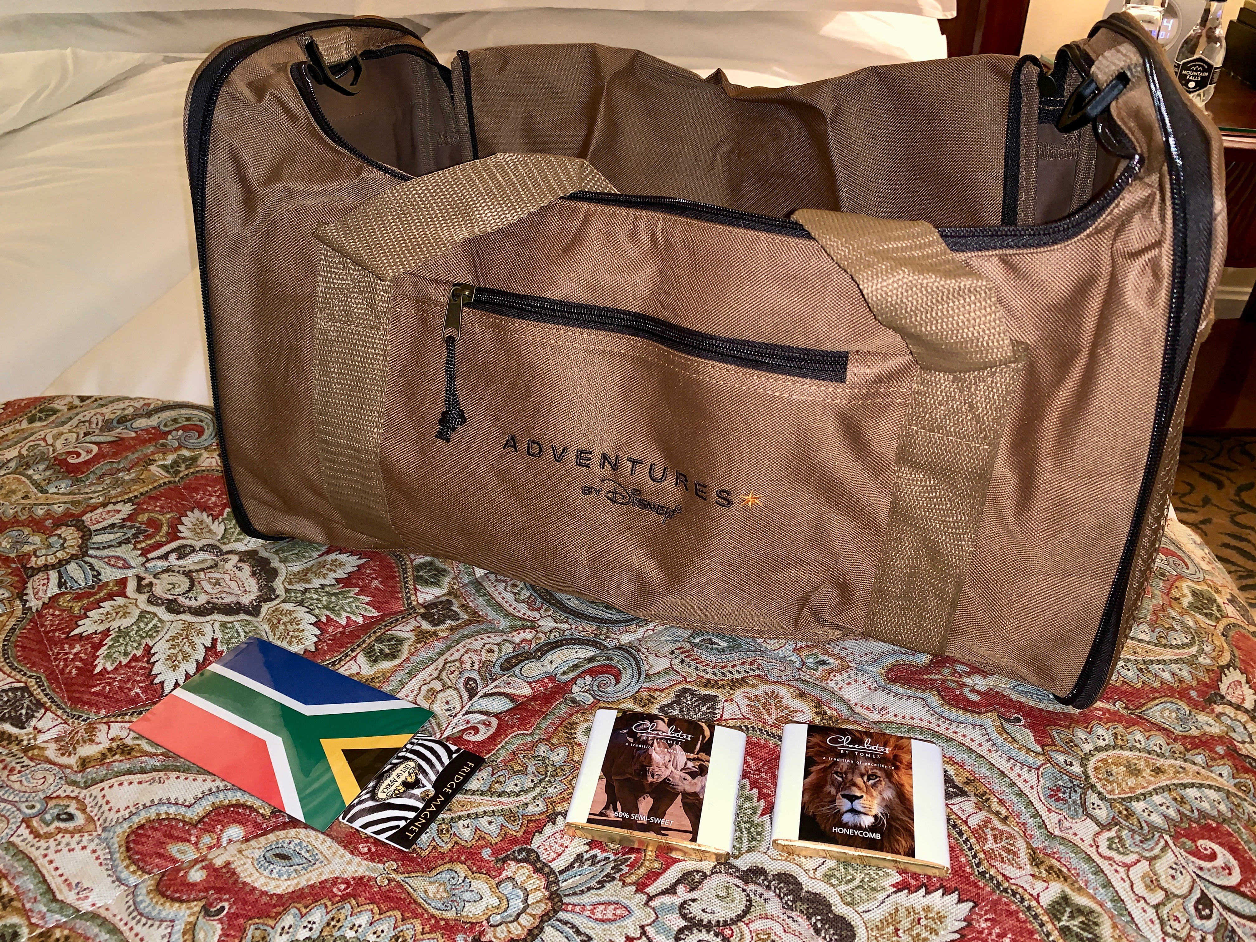 Once we arrived at The Table Bay Hotel, even at the late hour, we were met by our guides Kira and Craig and given the lay of the land and the amazing information that we would be meeting tomorrow for our first day of fun at 7:10 a.m. Of course, it wouldn't be a Adventures by Disney tour without some welcome gifts including our Day 1 pin, a great collapsable duffel bag, and our materials hand picked by Joe Rhode himself for the sketching we will be doing with him later in the trip.