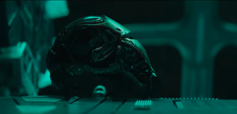 The trailer opens up with a look at Tony Stark's damaged Iron Man helmet from his battle with Thanos on Titan.