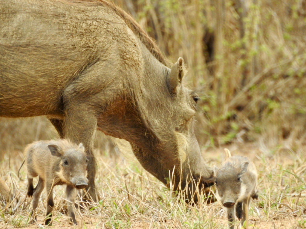 Post archery, as we waited to hear if our evening game drive was going to happen or not due to lightning and rain in the area, two mother warthogs and their babies were very close to the lodge area of this beautiful hotel.