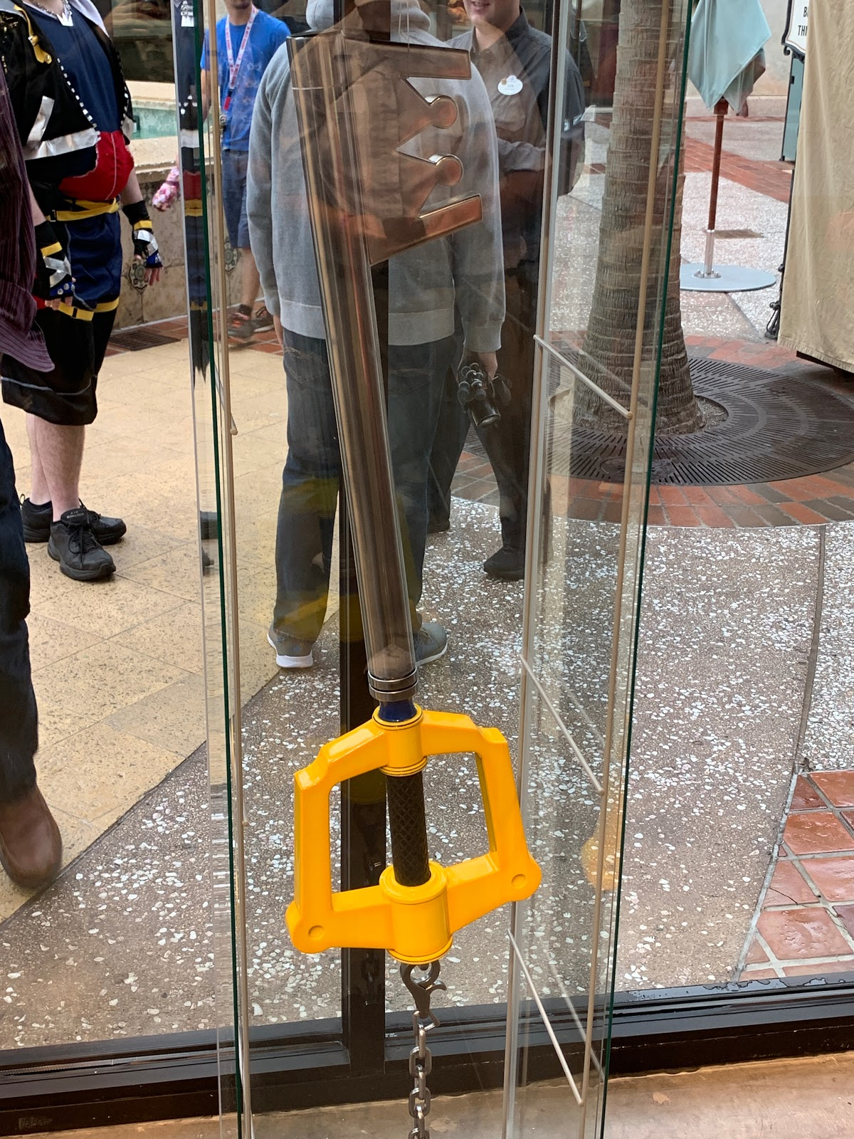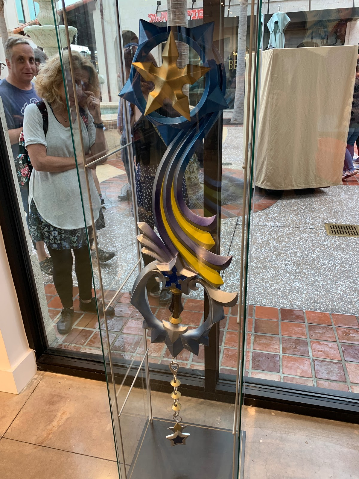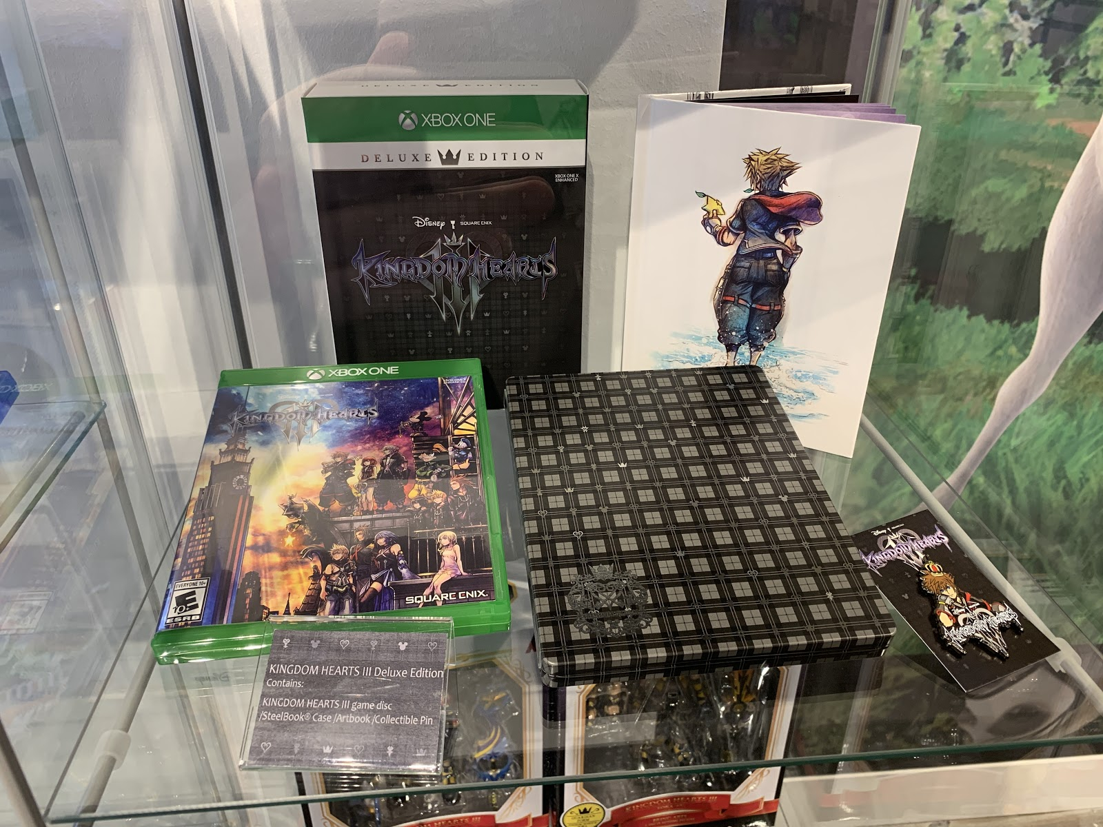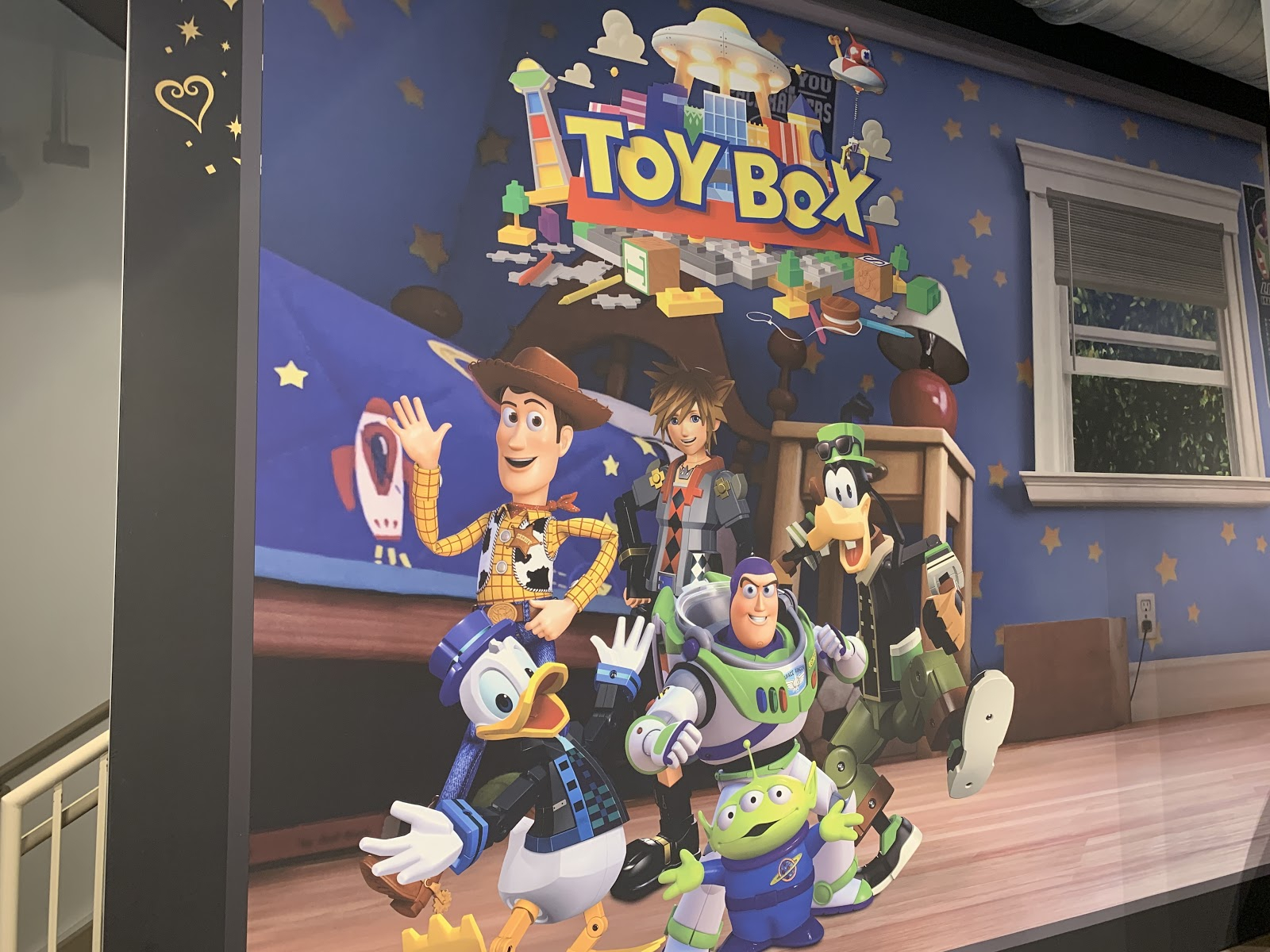 The walls of the shop are lined with artwork featuring some of the new adventures players will embark on when the game hits store shelves. Also on display are various merchandise items, fun Keyblade displays, and more.