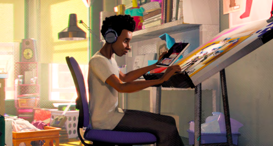 The “Spinning The Web” portion of the guide features directors Peter Ramsey, Bob Persichetti and Rodney Rothman discussing bringing the story of Miles Morales from the pages of the comics to the big screen.