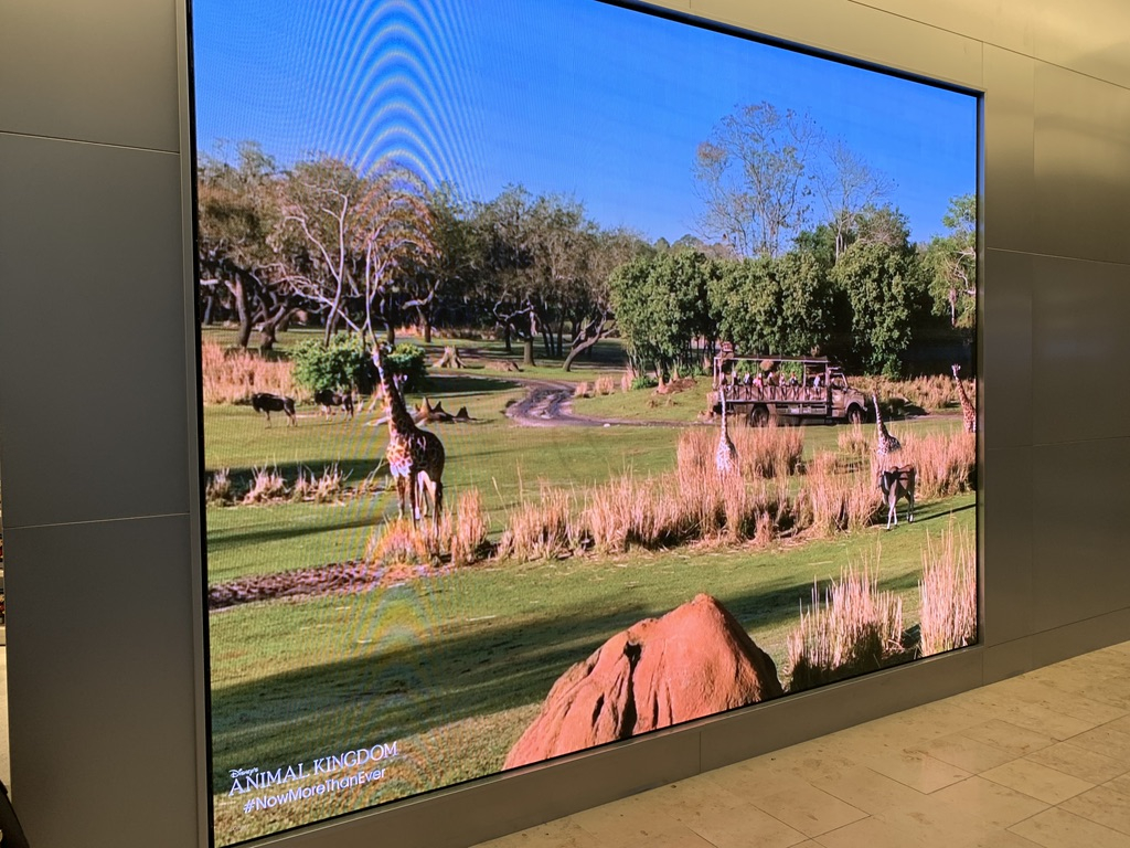 The fun starts before you step inside with a giant screen visible from far away that rotates through film clips from some of Walt Disney World’s most spectacular theme parks, attractions, and resorts.Those on their way to Orlando will get a preview of the magic that awaits them on their trip, while those heading home will be reminded of how amazing their vacation was.