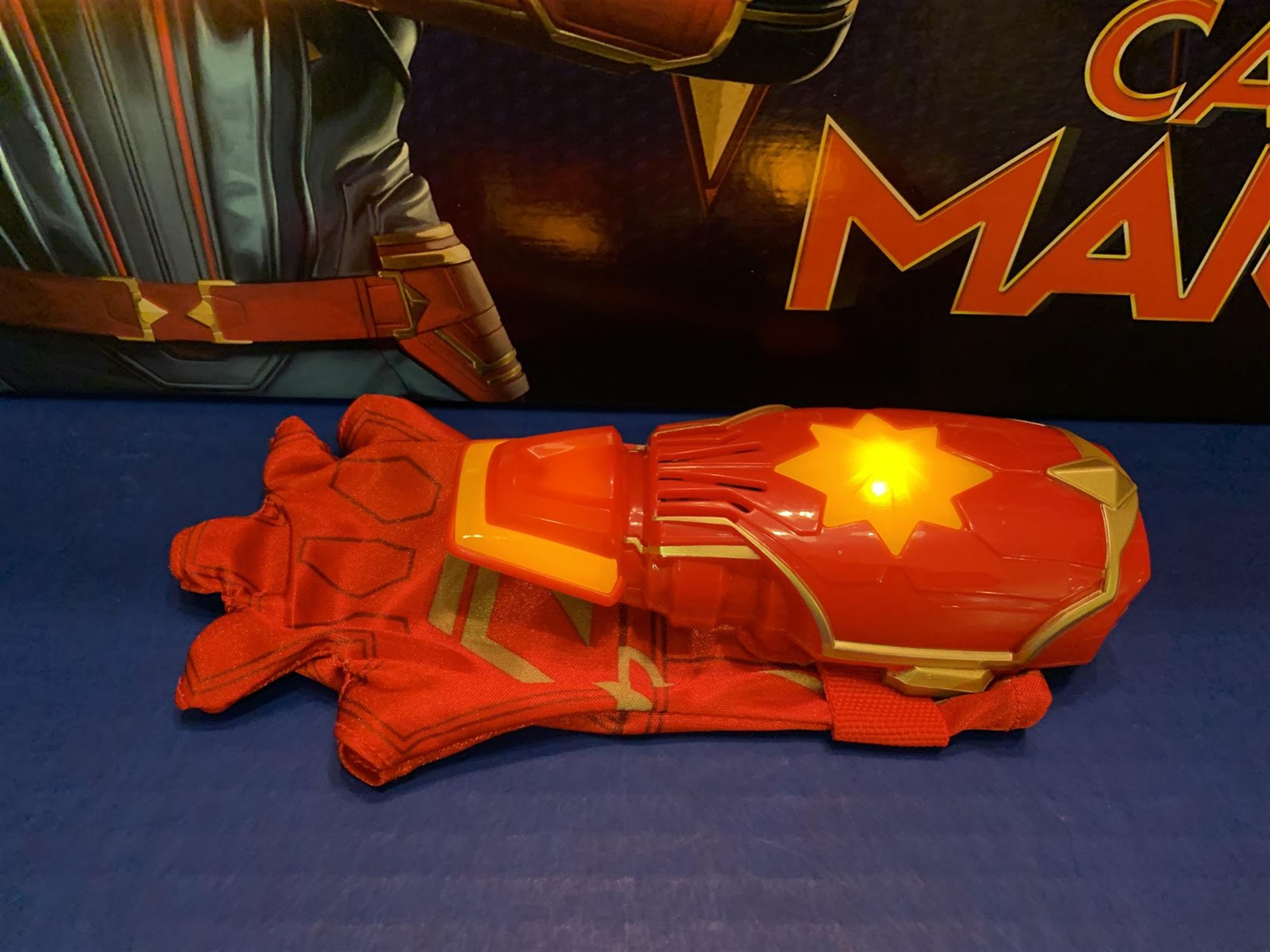 The final item in the box was a Photon Power FX Glove. A plastic battery powered device clasps on to your wrist and your right hand goes in an open fingered glove. Pressing the star on the device activates the lights and sounds and it will keep interacting with you until it lays motionless for a short time. It’s similar in play style to the Iron Man reactor toys. 2 AAA batteries are included and can be replaced with a phillips head screwdriver.