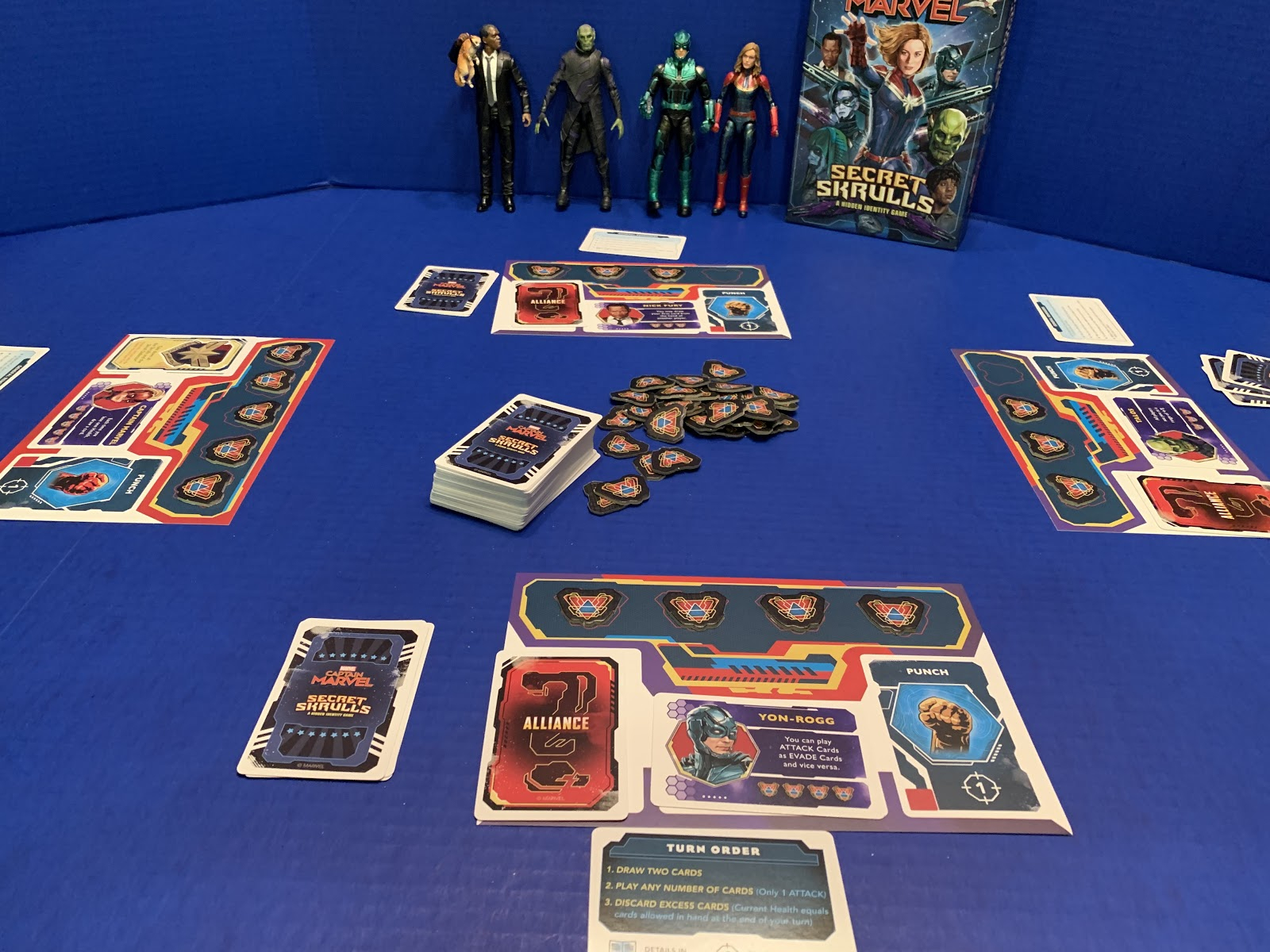 Players also choose a secret identity (except for Captain Marvel) and this includes being her ally, being a Skrull, or being a Skrull Deflector. While players know who is Captain Marvel, the identity of the other players is a secret they keep until they are either out of the game or, in the cast of an ally, they can reveal themselves once it is down to just them and Captain Marvel, claiming victory over the Skrulls. But certainly a defeat of Captain Marvel or her allies is a victory for the Skrulls and therefore a huge loss for all of mankind.