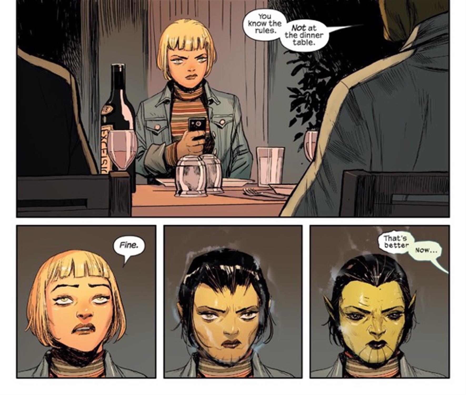 The Warner family, as they are known by their undercover aliases, are mostly successful Skrull operatives with experience in infiltrating human circles. That is, all except for Alice, who was born on Earth and is struggling to stifle her interest in human culture. Alice is a liability and could endanger the family’s mission and the family itself.