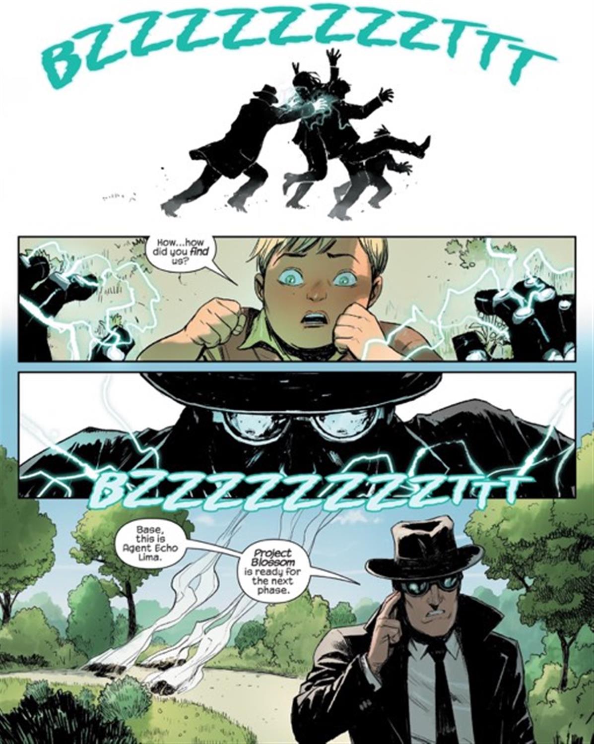 The final piece the story hits on is of course an antagonist. Project Blossom wouldn’t be so ominous with no one to carry it out. That’s where this mysterious man comes in. The issues starts and ends with a man with glasses, a hat and a trench coat. He appears to be hunting Skrulls and even mentions Project Blossom by name. In any other story, he probably plays as a hero to all mankind, but in this one he’s a threat to the Warner family.