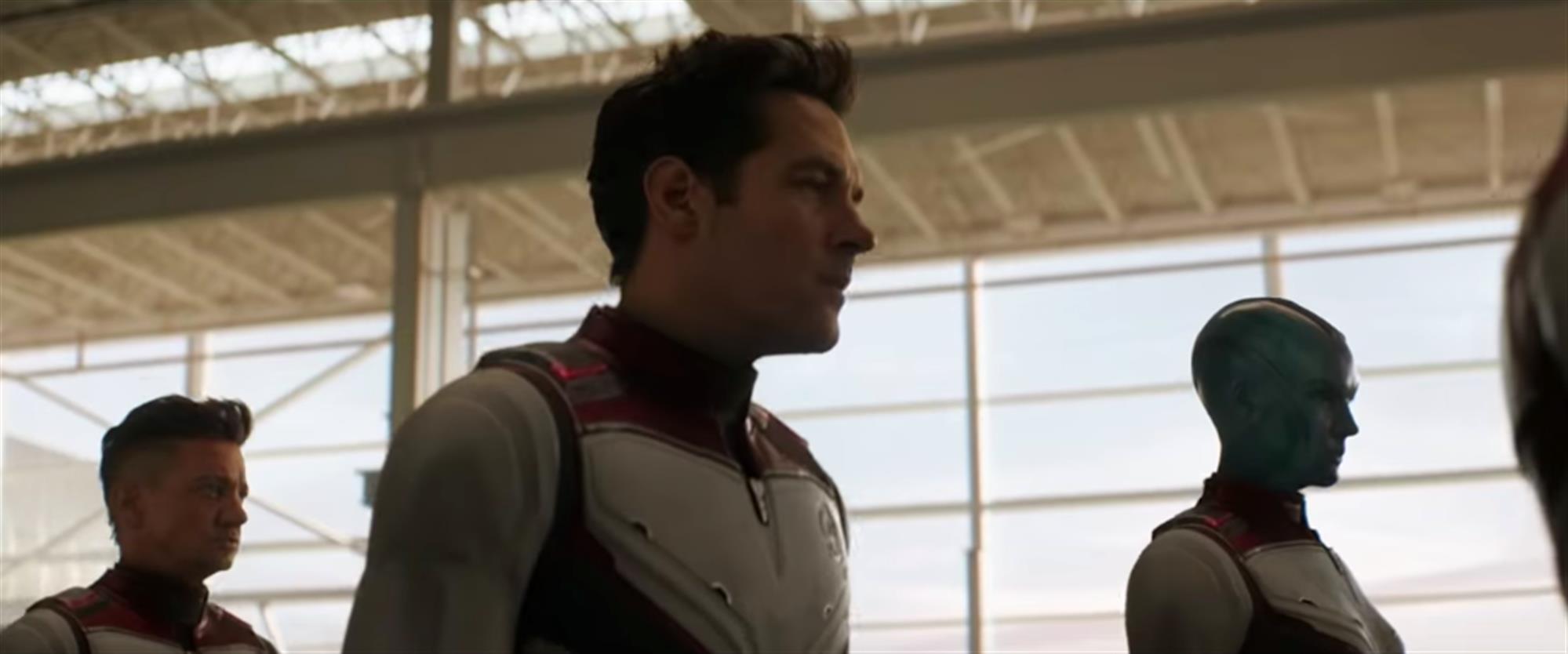 We once again see the Avengers making that dramatic walk that we saw in the TV spot, only this time there are a few more of them there. Cap, Natasha, Barton, Rhodes and Scott are joined by Nebula and Tony! And they’re all wearing some sort of special suits. My guess is they’re heading into the Quantum Realm to use it to travel through time.