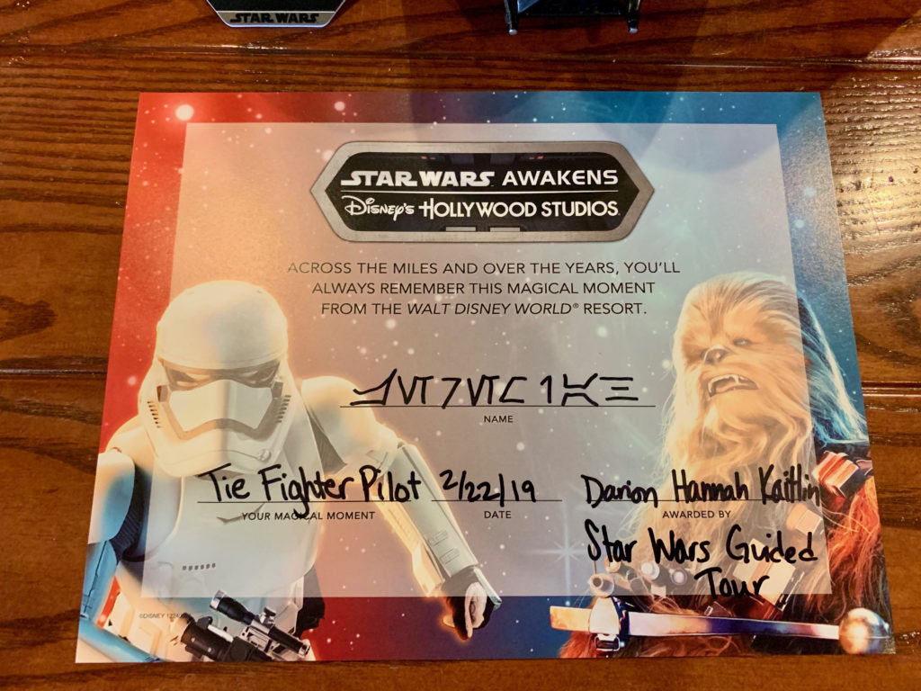 Unfortunately, the Backlot Express has removed the Star Wars themed items recently but it is still a great place to feed your Wampa sized appetite. As we sat down for the lunch that is included with the tour and we received some special surprises, including a name tag based off of your selection of the Light or Dark Side when you first book the tour.