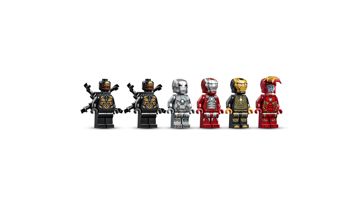 - Includes 5 Marvel Universe minifigures: Iron Man MK 1, Iron Man MK 5, Iron Man MK 41, Iron Man MK 50 and an Outrider.