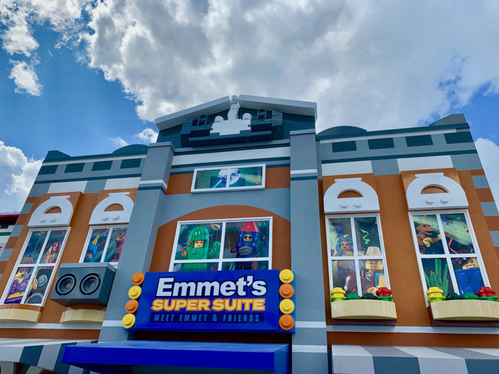 Rounding out Bricksburg is where everyone can eat, shop, and meet their favorite characters. At Emmet's Super Suite guests have the chance to meet two of four different rotating stars of the LEGO Movie films: either Benny and Emmet or Lucy and General Mayhem are enjoying the suite and posing for photos.
