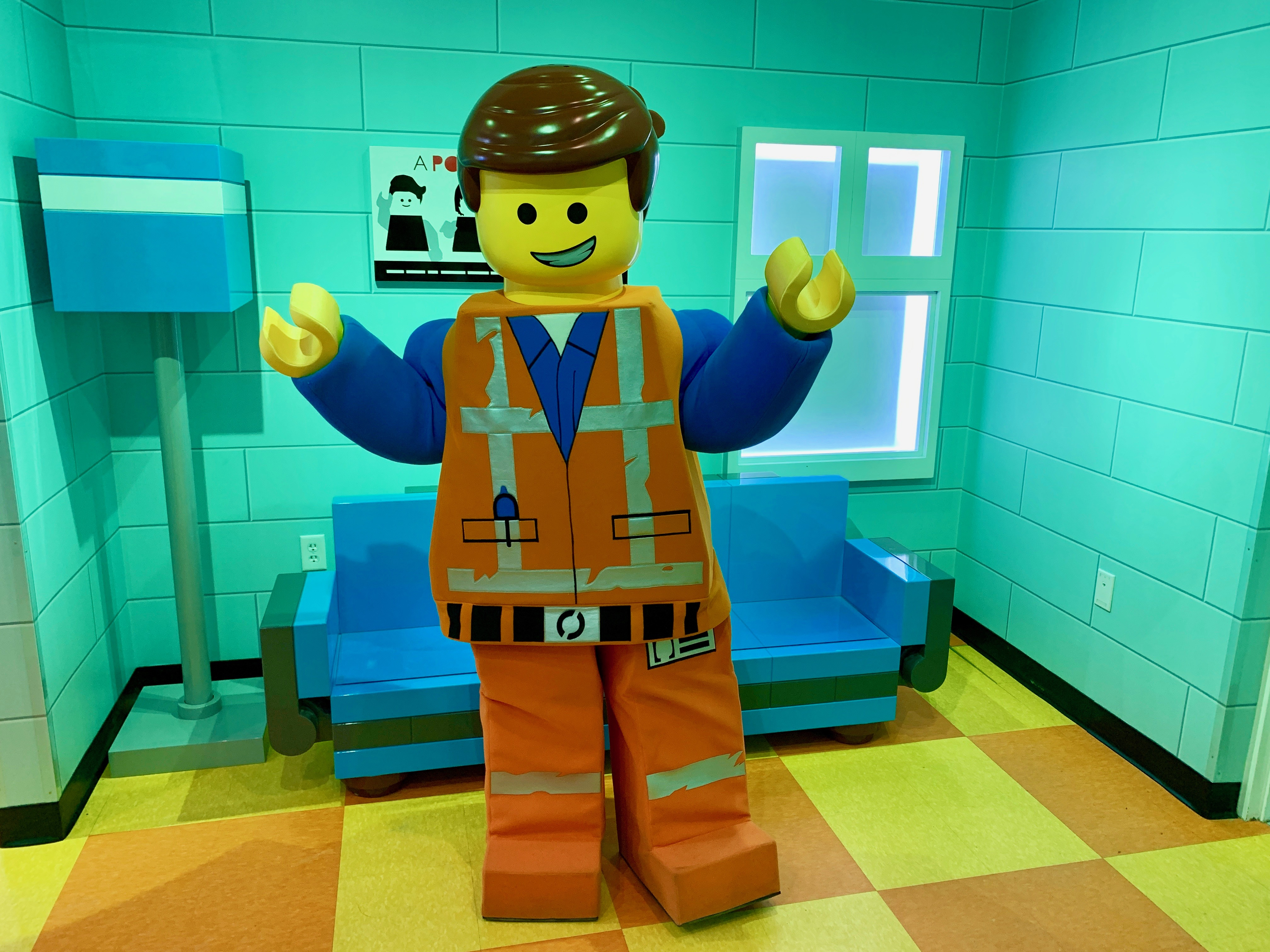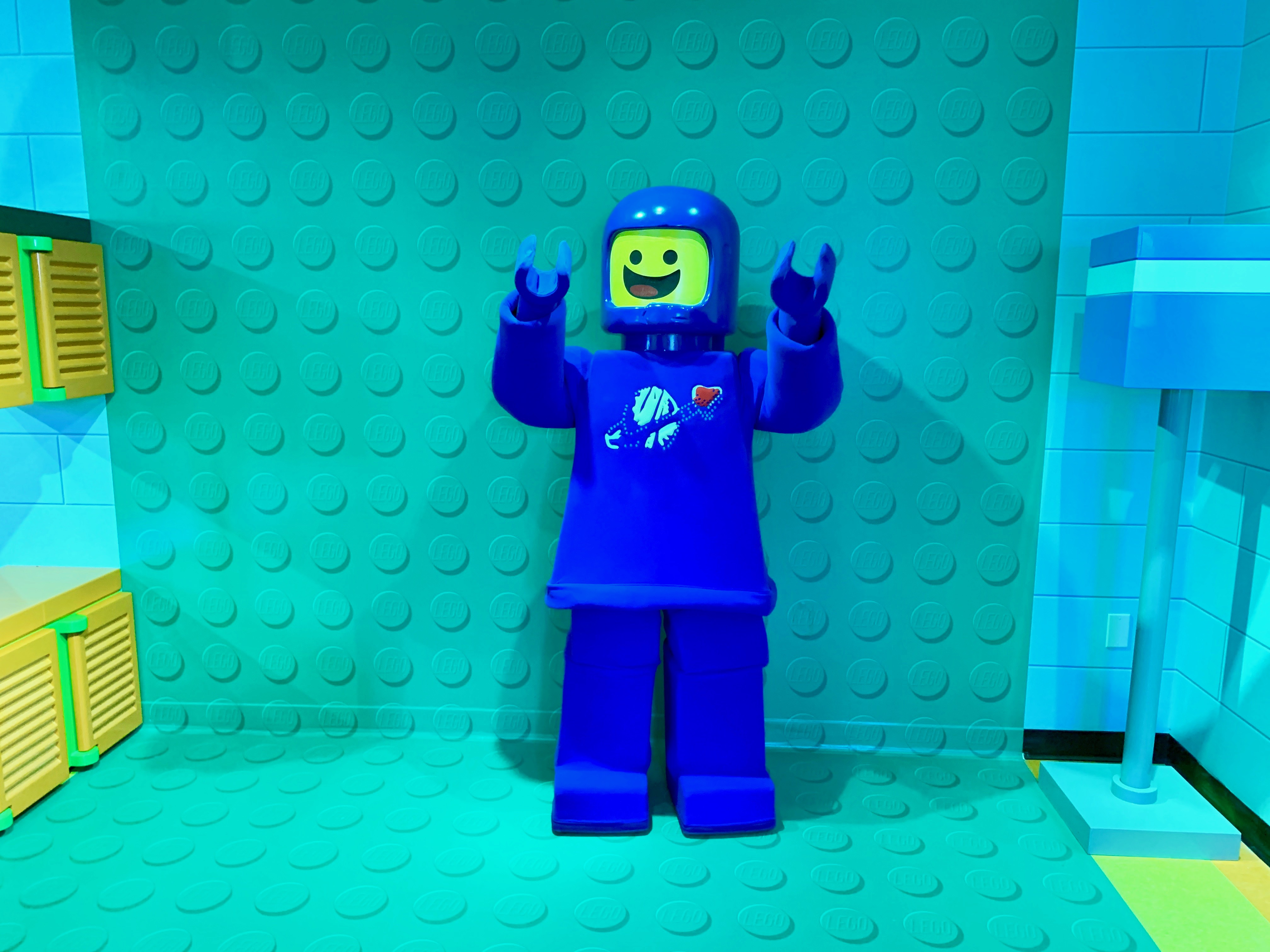 Rounding out Bricksburg is where everyone can eat, shop, and meet their favorite characters. At Emmet's Super Suite guests have the chance to meet two of four different rotating stars of the LEGO Movie films: either Benny and Emmet or Lucy and General Mayhem are enjoying the suite and posing for photos.