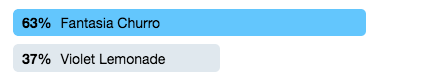 Before we move on to today’s matchup, let’s take a look at our last result. It wasn’t a very close one. The Fantasia Churro ran away from the Violet Lemonade to win the Instagram-Worthy region and move on to our final 4.