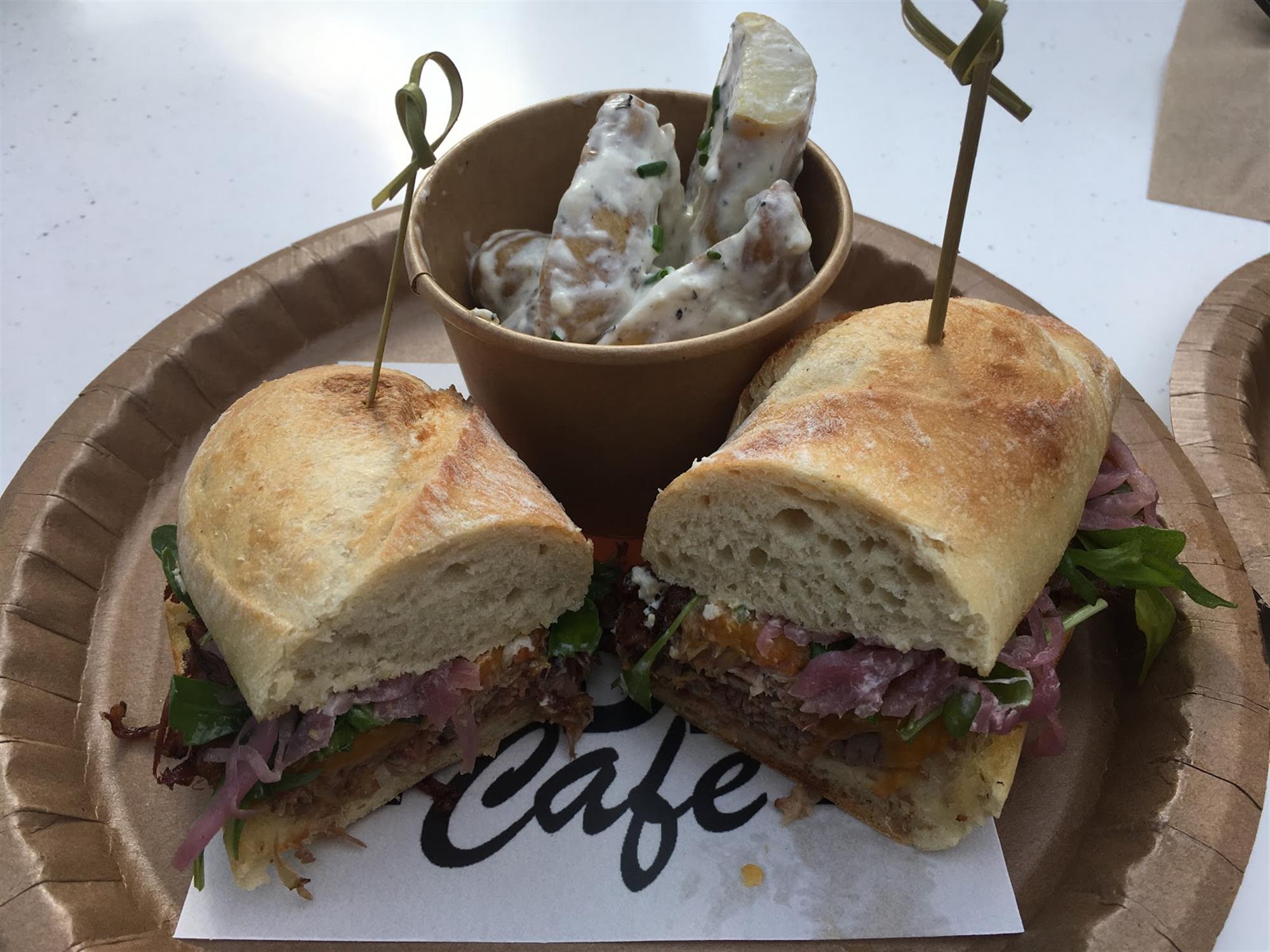 The sandwich was fantastic. The combination of the brisket and the horseradish cream was delicious. In fact, this might be my new favorite quick-service item in Universal Studios Florida. Sandwiches are served with a side of either potato salad or fruit salad. I opted for the potato salad which was a bit different from what I was accustomed to, but not bad.