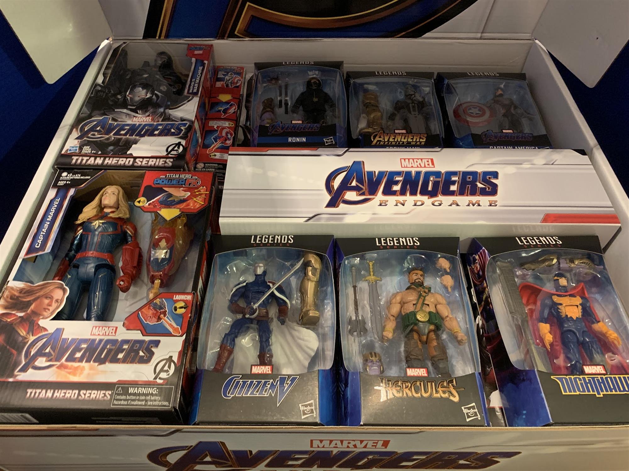 Opening the box revealed three layers of toys that include that latest wave of Marvel Legends figures, Titan Heroes, action figures, motion figures, and Nerf weapons.
