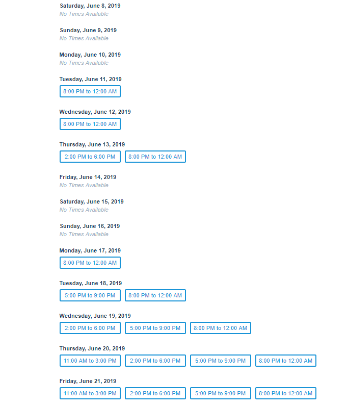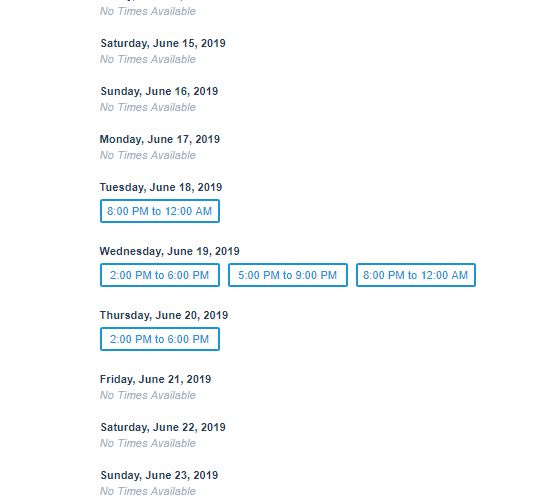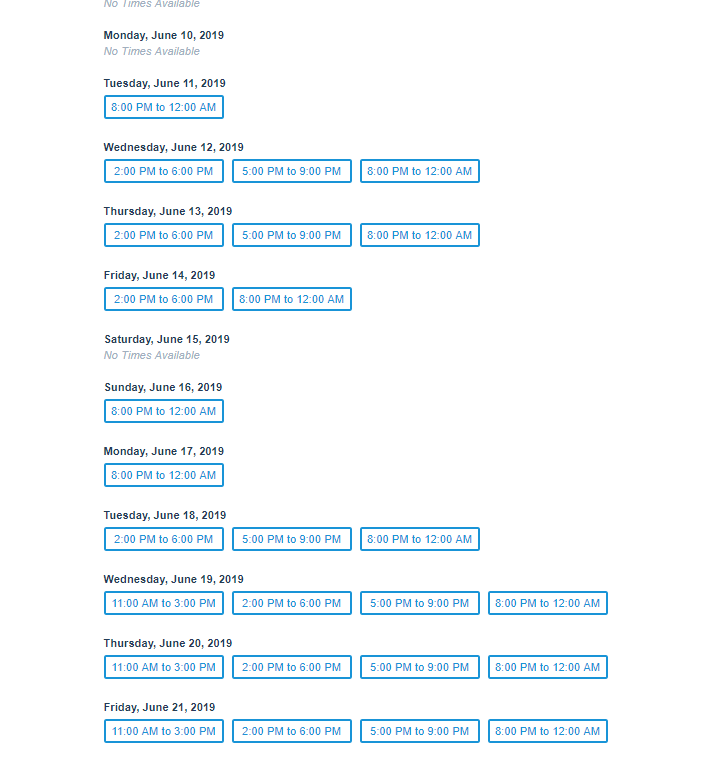 11:26a Update: Here’s where available starts as of a couple of minutes ago. All prior dates were unavailable. There were later dates still available.
