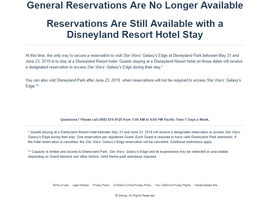 - Once you make your Star Wars: Galaxy’s Edge reservation, no changes or modifications will be allowed. Reservations are void if transferred or sold. Unused reservations will be forfeited and not replaced.
