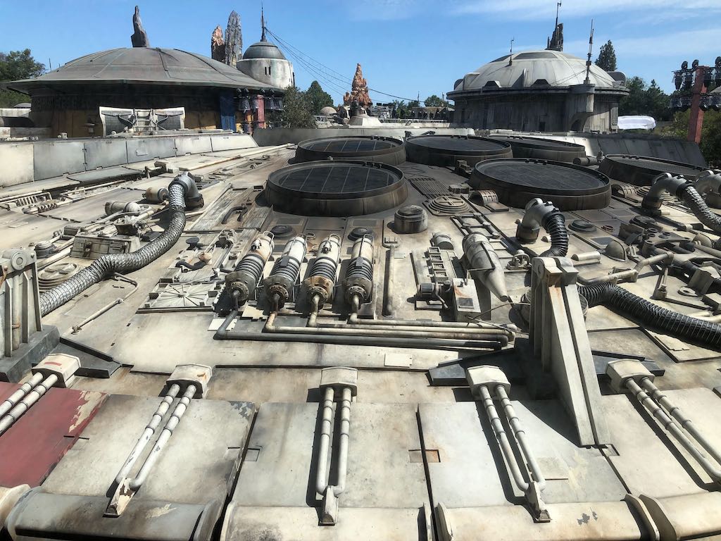 - Walt Disney Imagineers worked with Lucasfilm to ensure authenticity in every detail of the Millennium Falcon – down to the hoses, pipes, switches and even the stickers on the exterior hull. Imagineers visited Pinewood Studios in the United Kingdom to study Falcon film sets and pored over archival Lucasfilm photographs of the ship.