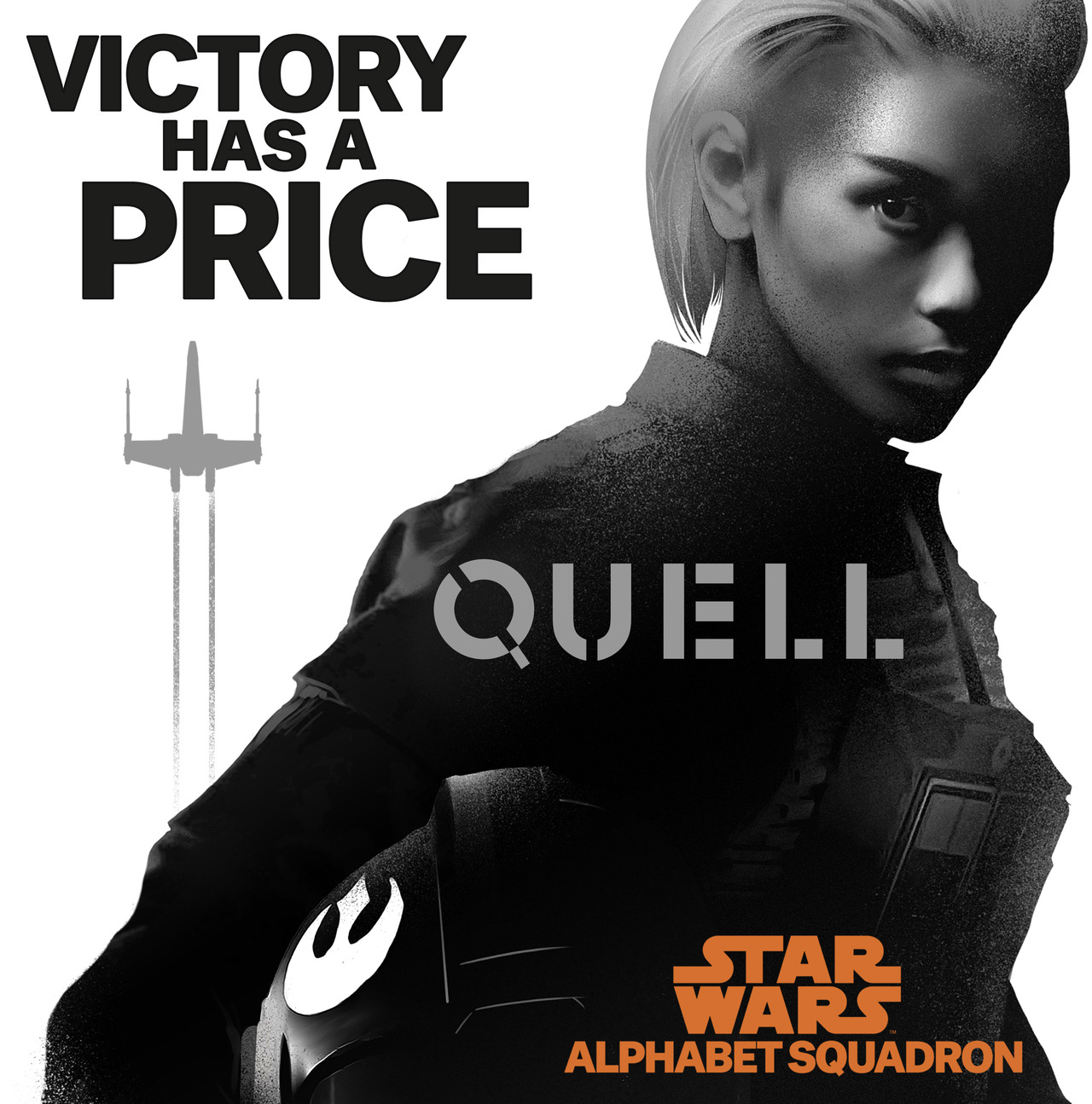 The moniker Alphabet Squadron is assigned, first as a mocking nickname, by other members of the New Republic military, as a reference to the group’s makeup of a stolen X-Wing starfighter (flown by Yrica), a beat-up Y-Wing (piloted by another, more self-interested defector named Nath Tensent) an A-Wing (manned by young ace Wyl Lark) a B-Wing (flown by hotshot hothead Chass na Chadic), and a U-Wing (helmed by mysterious and mostly silent brute Kairos).