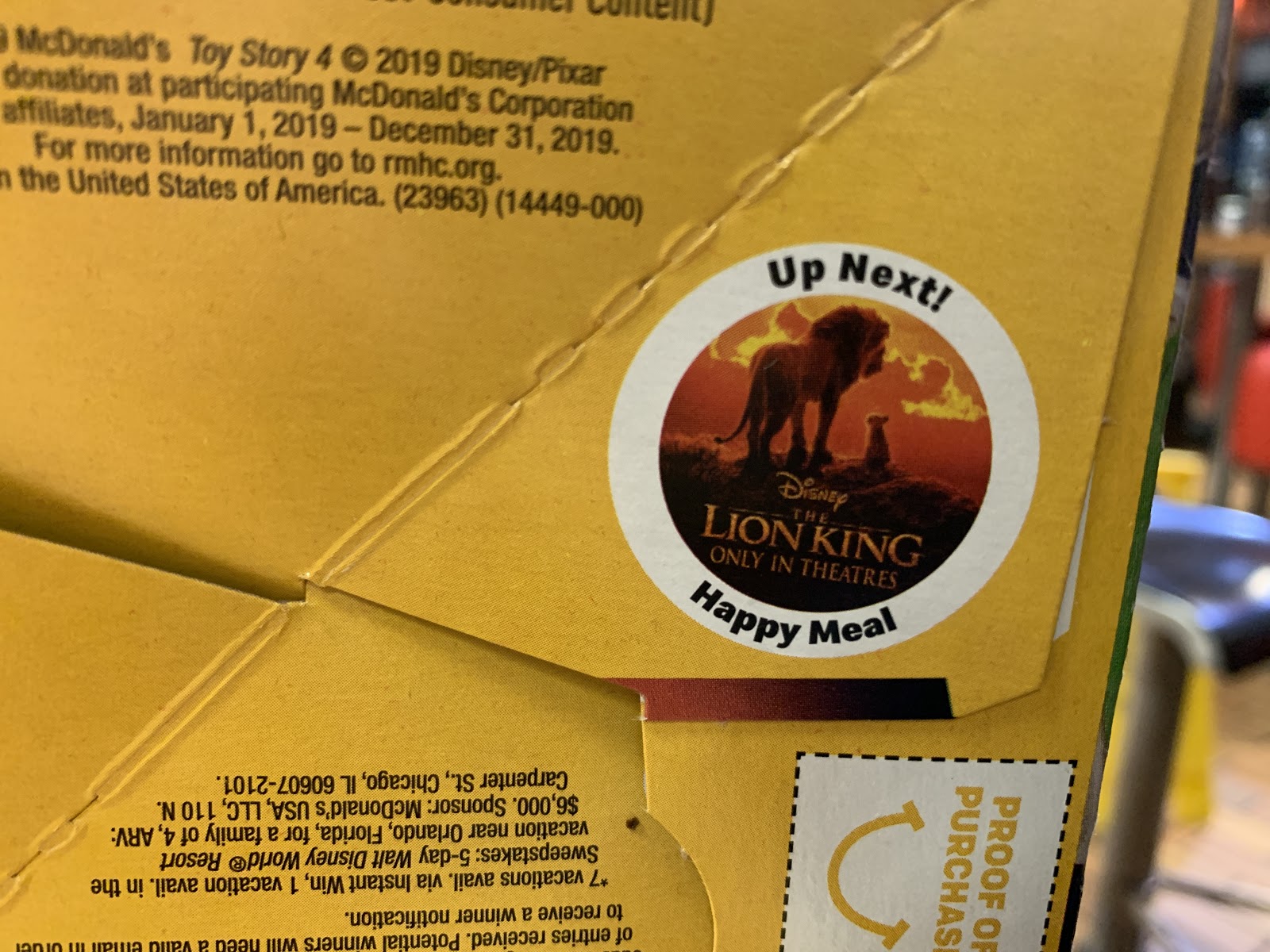 The bottom of the Happy Meal box reveals what’s coming next. Disney’s The Lion King will be the next Happy Meal theme. This is the first time there will have been back-to-back Disney themed Happy Meals since the new contact between Disney and McDonald’s.
