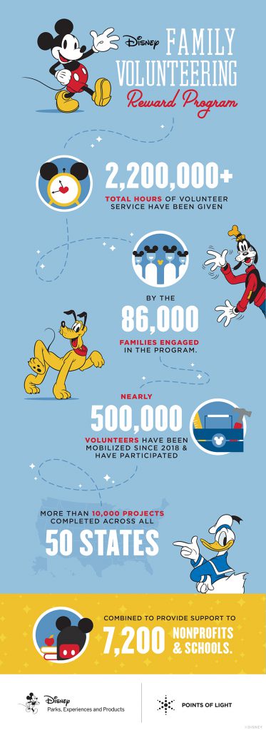 For more information on the Disney Family Volunteering Reward Program or the search for the 2019 Disney and Points of Light Volunteer Family of the Year, or to get a school or nonprofit you know involved you can visit PointsOfLight.org/DisneyRewards