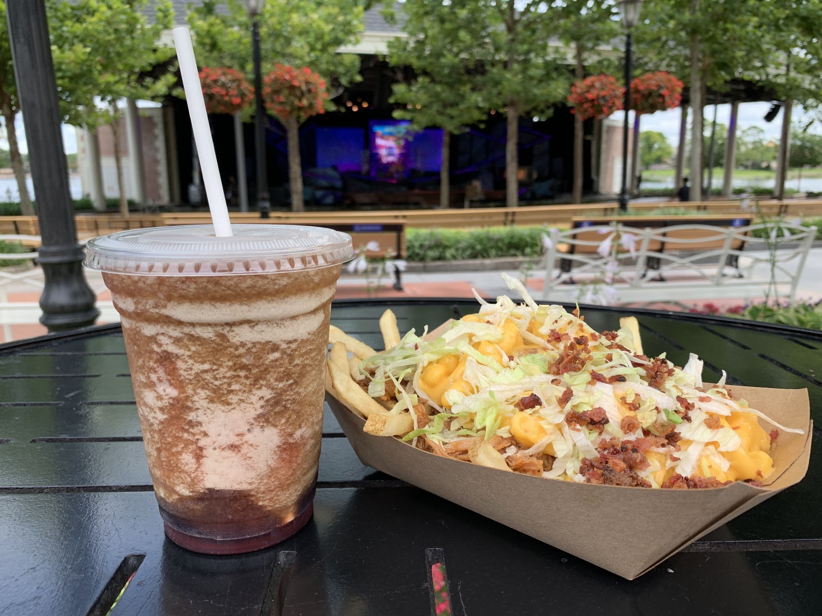 Last summer, when this show debuted, the Fife & Drum Tavern had limited drink options themed to GotG. But, after the show proved popular, it is returning, bringing some new food options. Today, I went for the Awesome Plate Mix (french fries topped with barbecue pulled pork, macaroni and cheese, bacon, and lettuce) and topped it off with the Rocket Fuel Slush (a frozen Coca-Cola slushy with grenadine).