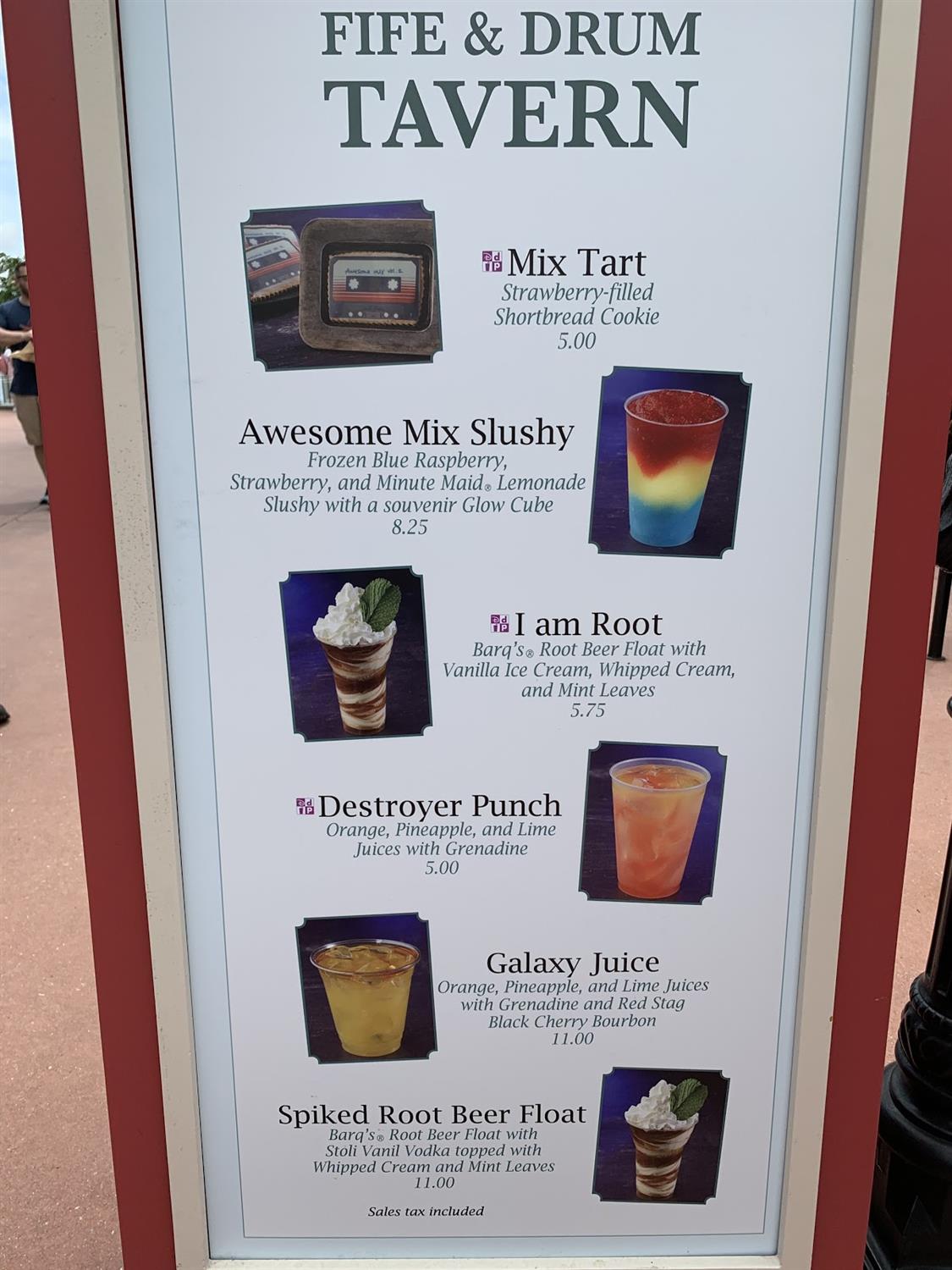 At the Fife & Drum Tavern, the I Am Root float and Awesome Mix Slushy return with some new themed adult drinks.