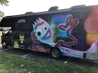 Disney-Pixar is doing it again. They are hitting the road with a menagerie from Toy Story 4, crisscrossing the country bringing some of the magic of the movie to a city near you. This time they have packed a recreational vehicle with games of chance, a spin-wheel, and a selfie-booth so fans of the toys can get an exclusive photo with one of the new stars of the film.